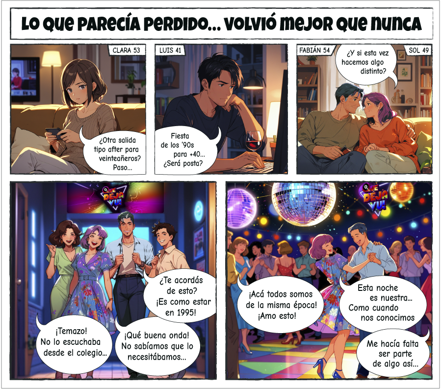 En cada encuentro, revivimos lo mejor de los '80, '90 y 2000: la música, la moda, las series, los juegos, las charlas, el baile y esa vibra inolvidable que tanto nos marcó.
